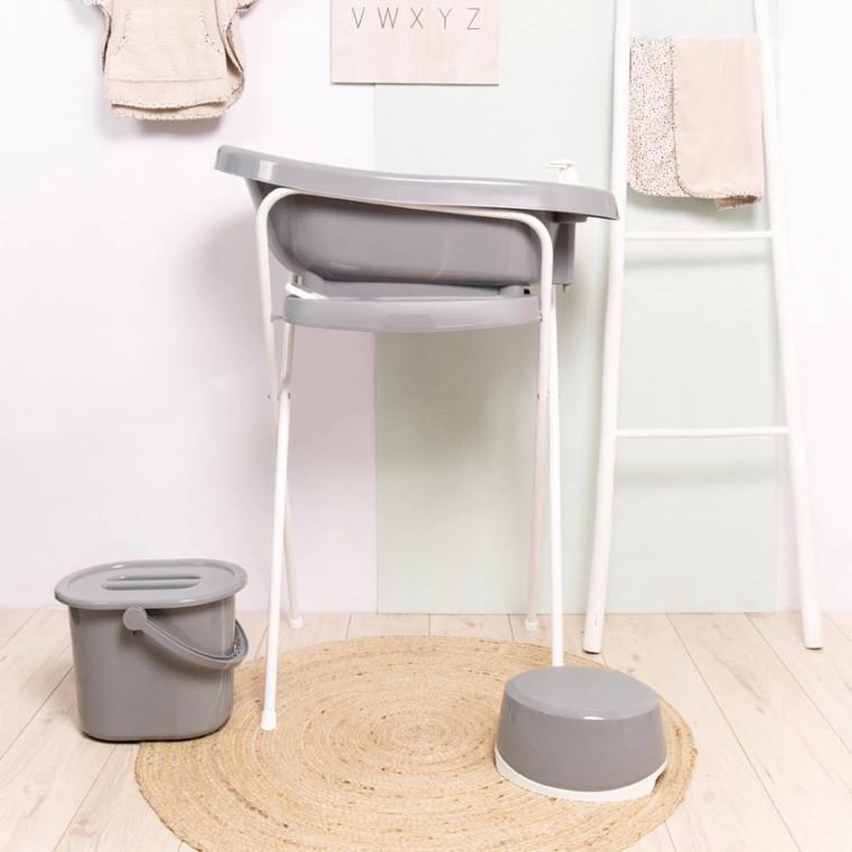 De inhoud van de emmer is 14 liter, precies voldoende om het babybadje te vullen.