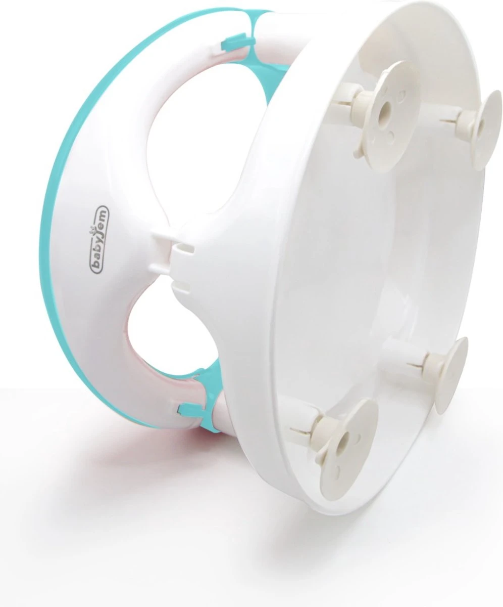 Met deze handige turquoise badring van Babyjem kan jouw kindje zelfstandig zitten in bad of in de douche, terwijl jij je kindje kunt wassen. De badring heeft aan de onderzijde 4 zuignappen waarmee deze vast gezet kan worden in bad of douche, dit biedt extra veilig- en stevigheid zodat de badring niet zomaar verplaatst.