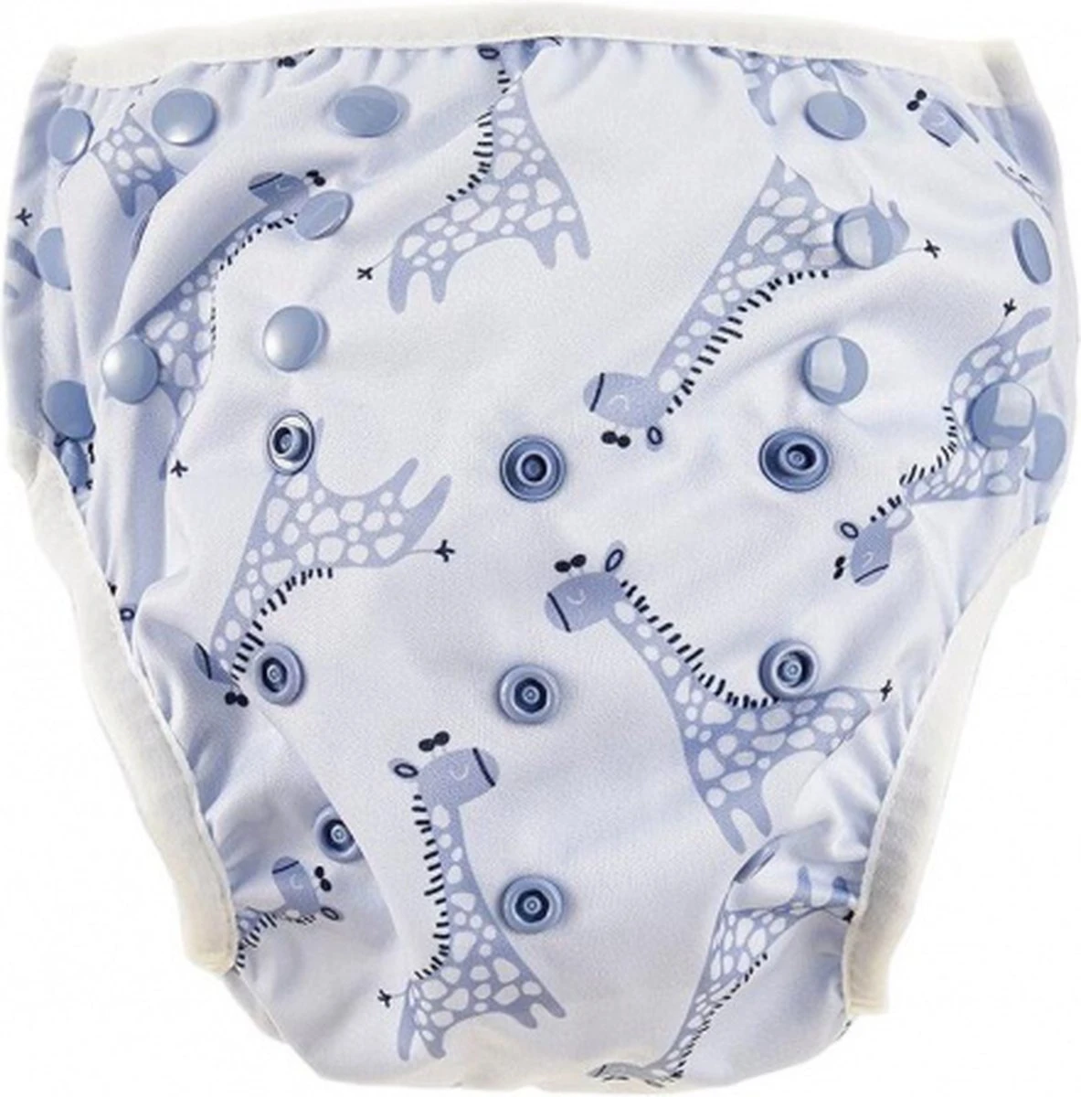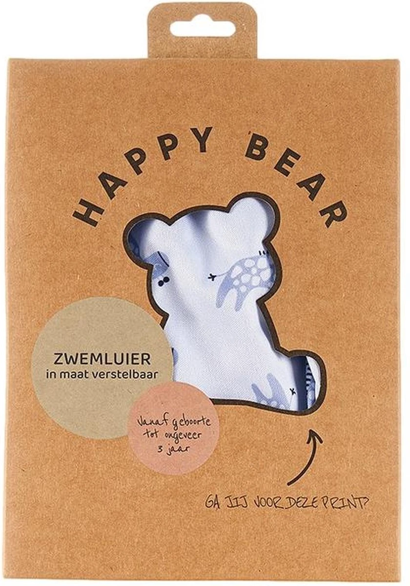 Zorg dat de zwemluier goed aansluit om de beentjes en de romp van je baby, zodat eventuele ontlasting er niet uit kan lopen. Er hoeft geen wegwerpzwemluier onder de HappyBear zwemluier.