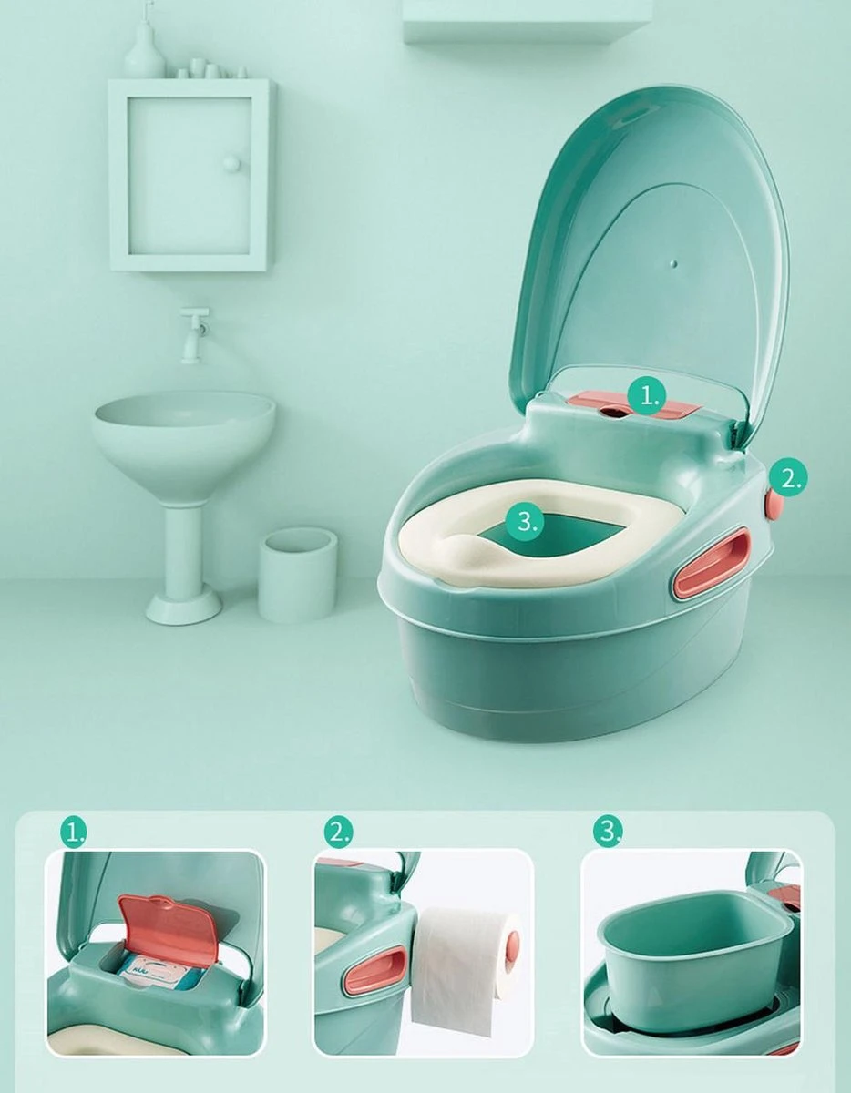 Dit multifunctionele draagbare plaspotje met deksel is veel meer dan alleen een potje: het kan ook dienen als wc verkleiner met trapje/opstapje voor jouw kindje. De zitting heeft een antislip kunstlederen (PU) Wc-bril voor maximaal zitcomfort en schoonmaakgemak. Je kunt het potje gemakkelijk en veilig op een toilet voor volwassenen bevestigen met het 4-punts mechanisme.